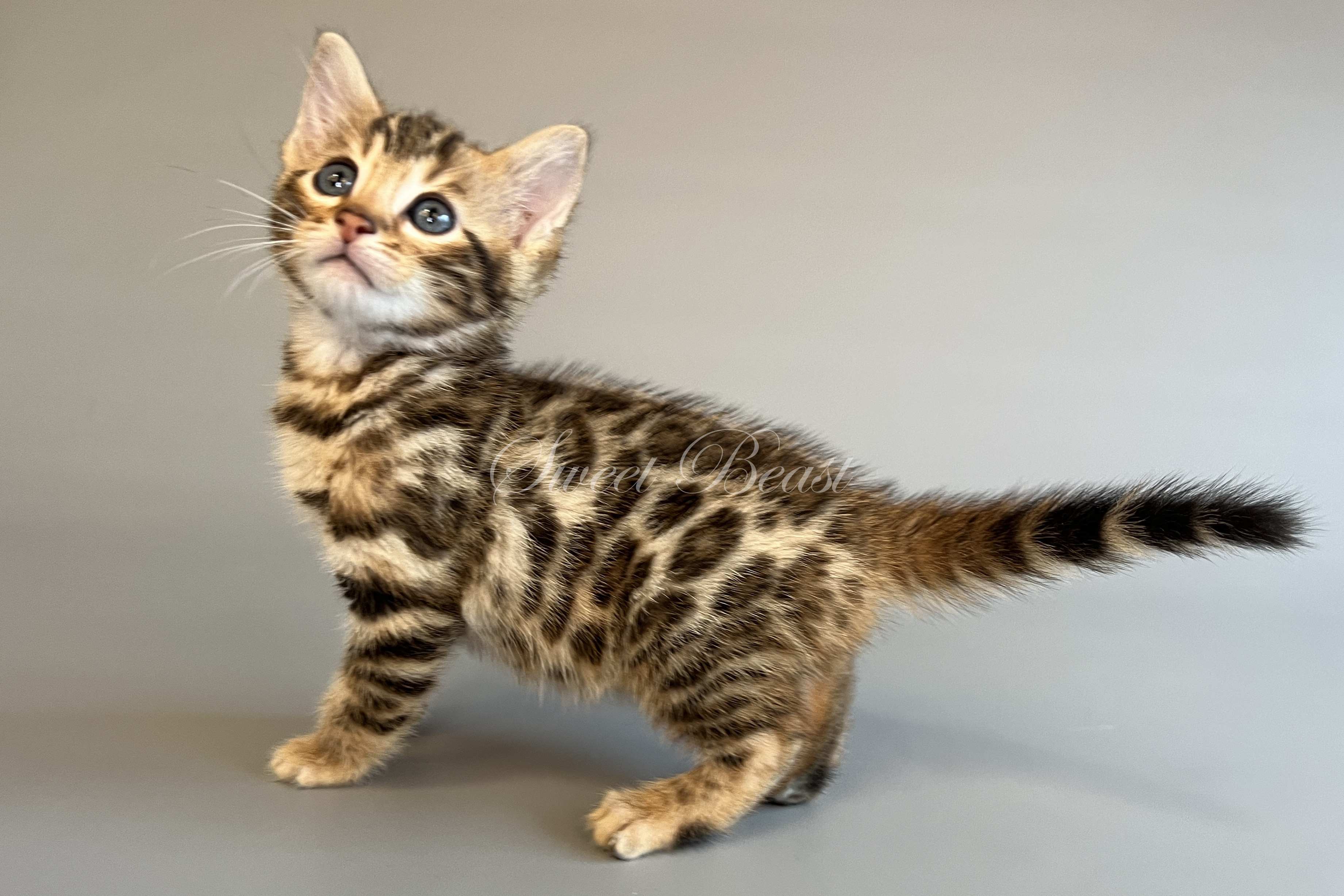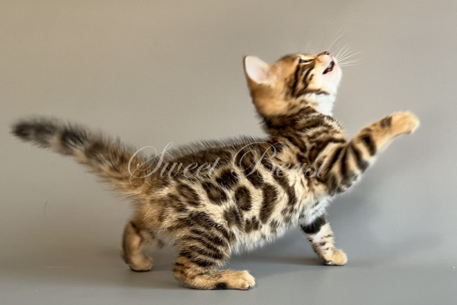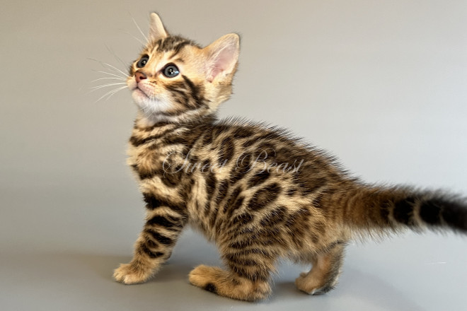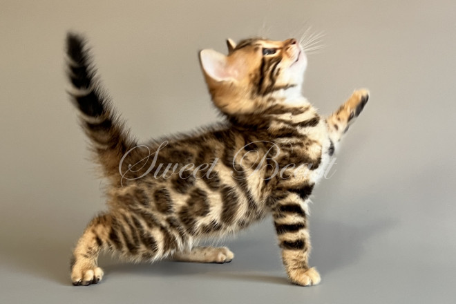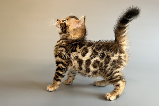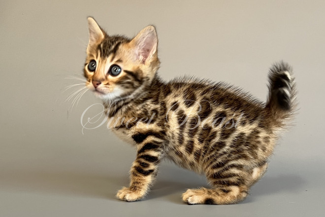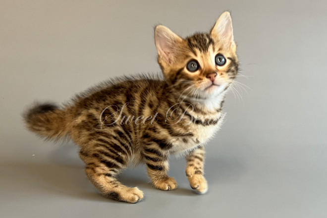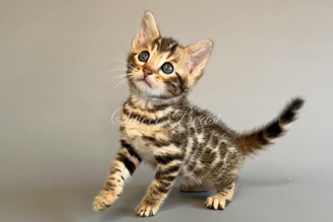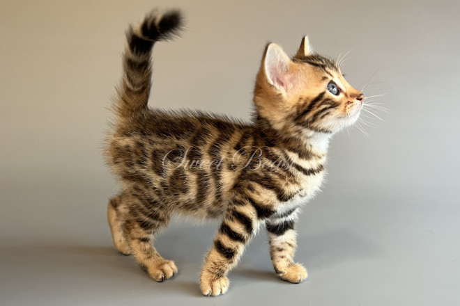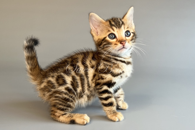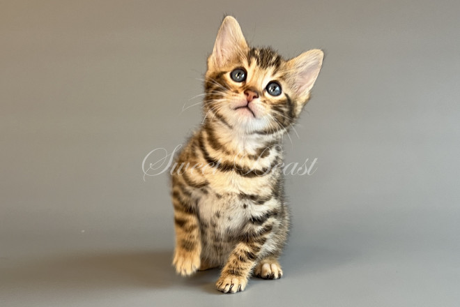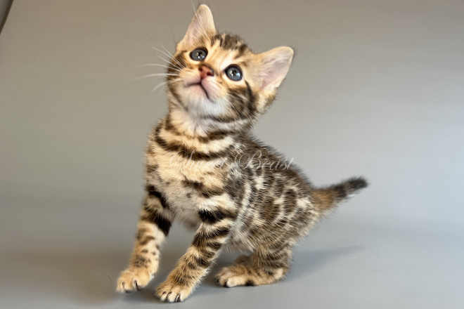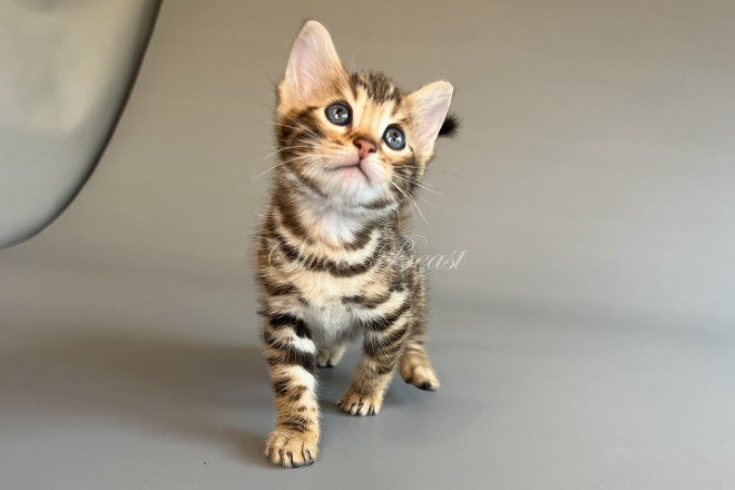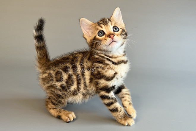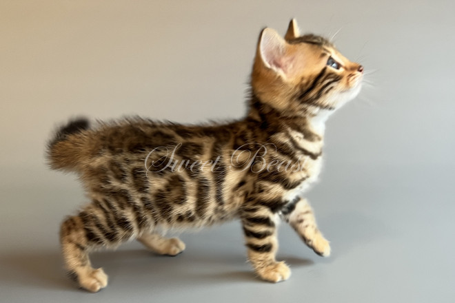 Gender: male Colour: brown spotted mink EMS-code: BEN n 24 Date of birth: 24.08.2025 (2 months 4 days) Ready to leave the nursery from: 23.11.2025 Pet class: Breeding Status: in wish list from 27.10.2025 for Sparrow, but you also can send the request. 14 days left to removing the cat from the wish list.