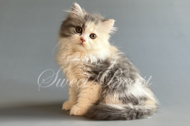 Gender: female Colour: blue tortie with white EMS-code: MNL LL g 03 Date of birth: 29.05.2025 (5 months 10 days) Pet class: Breeding Status: in wish list for Sparrow, krisztie, but you also can send the request