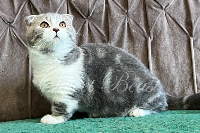 Gender: male Colour: Blue tabby bicolor EMS-code: MNS a 21 03 Date of birth: 24.05.2025 (6 months 10 days) Pet class: Рet Status: sold