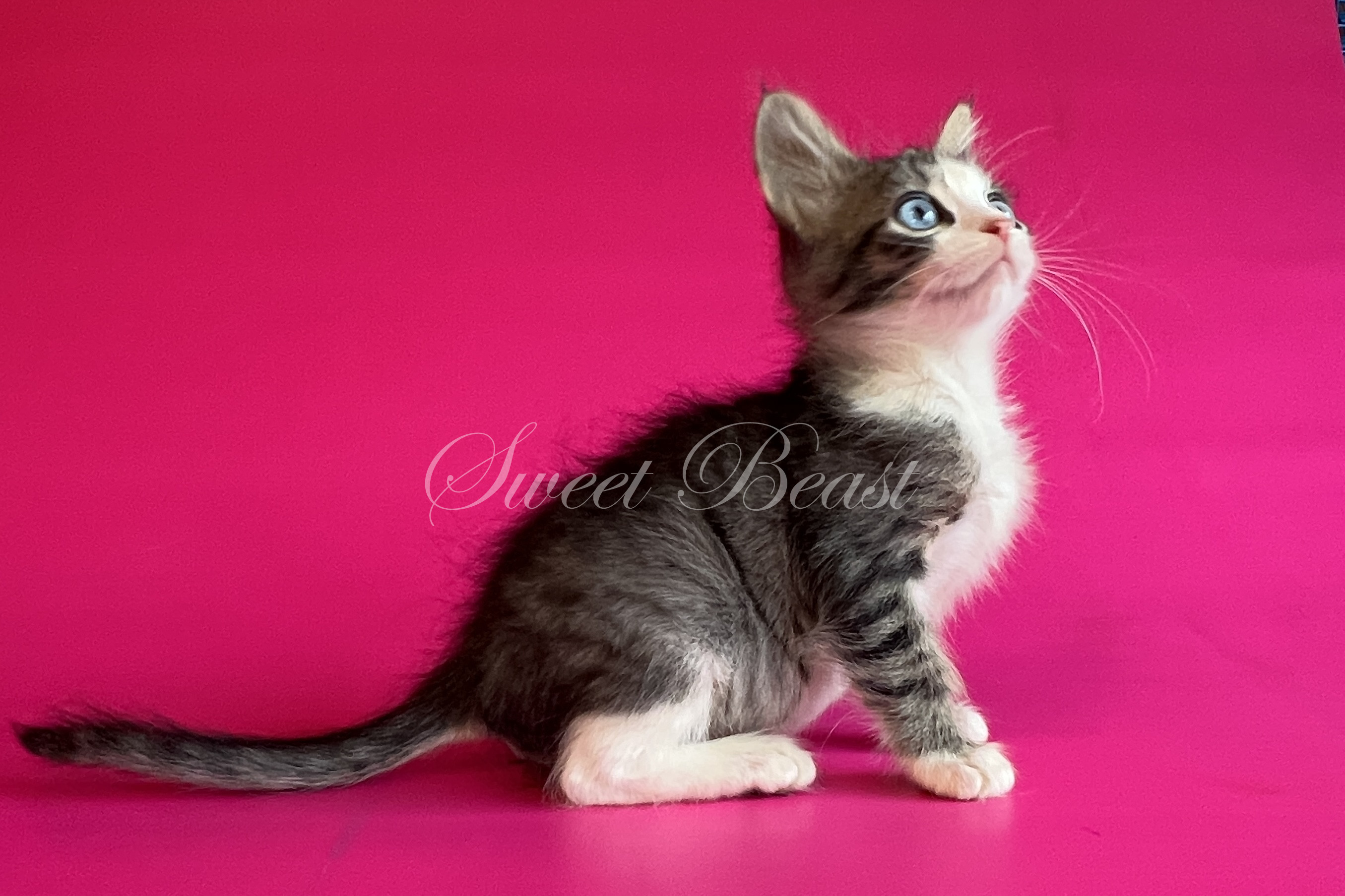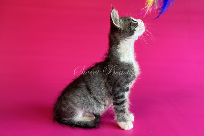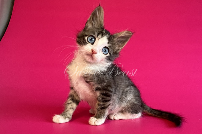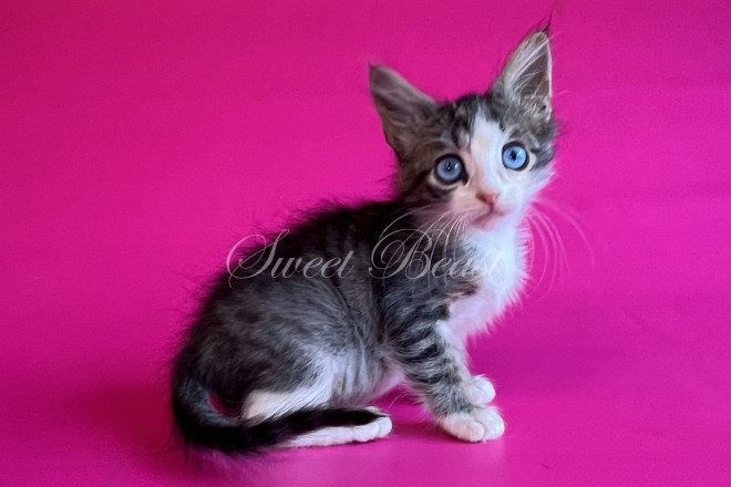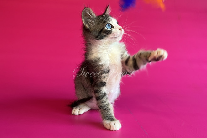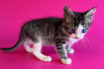 Стать: дівчинка Забарвлення: чорний аббі біколор, блакитні очі EMS код: MNS LL n 21 03 Дата народження: 16.08.2025 (2 місяця 15 днів) Готовий залишити розплідник з: 15.11.2025 Клас кошеня: Брід (для розведення) Статус: вільний